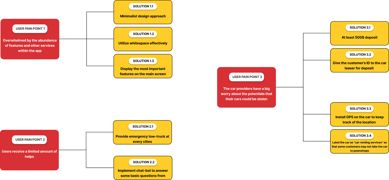 We matched the identified pain points with solutions from our research. We also consider car provider as our customers because they use our app to rent cars.