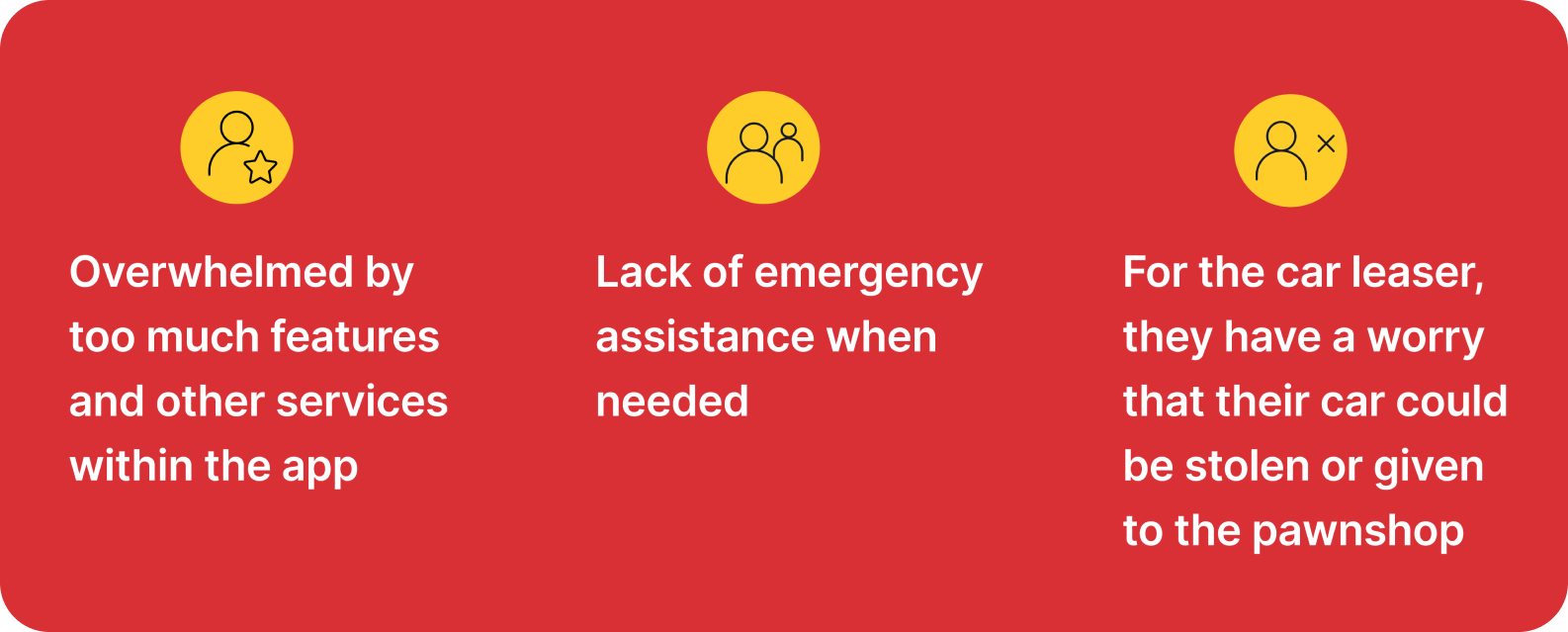 After conducting the competitive analysis and doing market research, my team has pointed out 3 user pain points while experiencing the car-renting services.