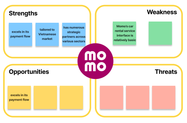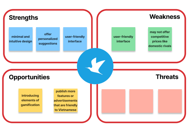 Then I did SWOT Analysis to point out strengths, weakness, opportunities, and threats of both Traveloka and Momo.