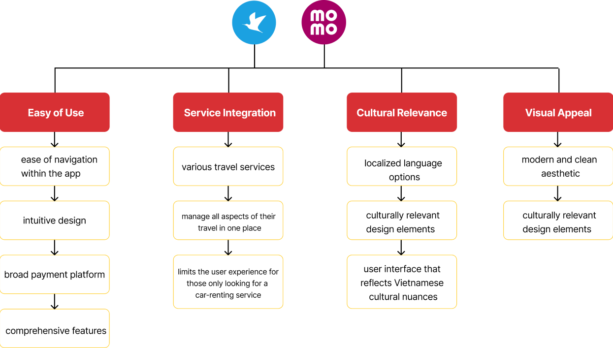 Given the popularity of this service in the market, I conducted thorough secondary research focusing on a competitive analysis of two leading car-renting apps in Vietnam: Traveloka and MoMo.
